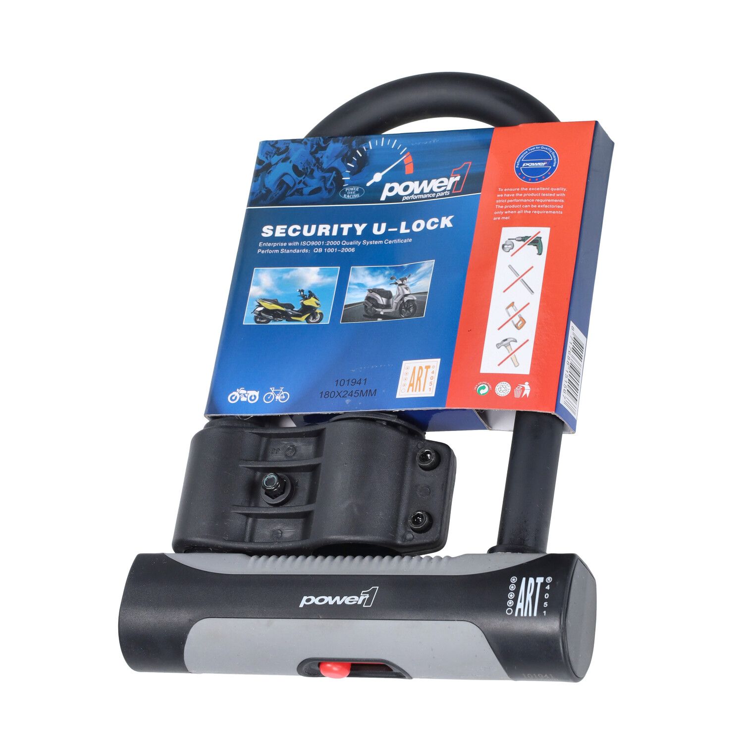- ART-4 sterren: Het Power1 Beugelslot is ART-4 gecertificeerd, wat betekent dat het voldoet aan de strengste eisen op het gebied van diefstalpreventie en beveiliging.