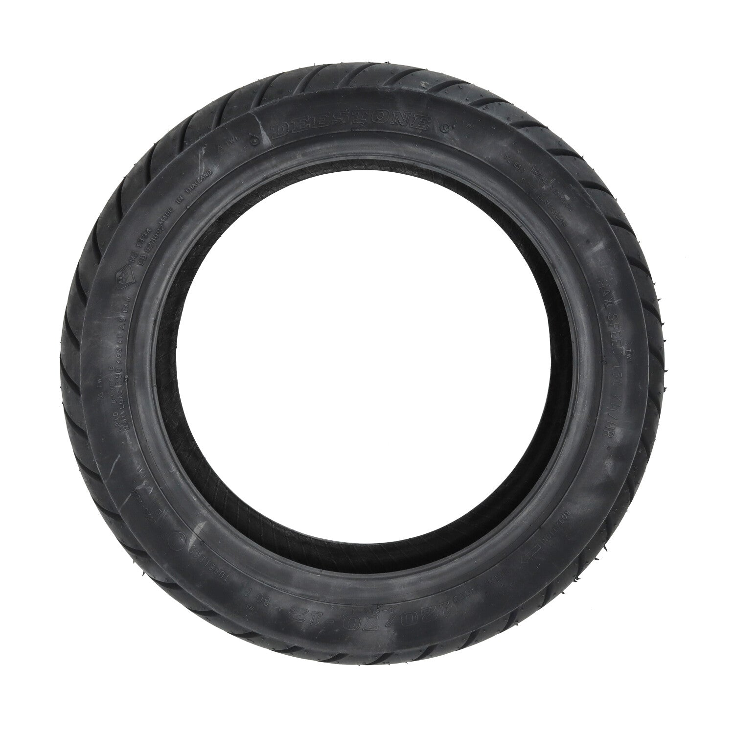 Sportieve tubeless slick buitenband van Deestone in 12 inch voor strak stuurgedrag en maximale grip op droog wegdek. Ideaal als je een sportieve setup rijdt of gewoon een strakke slick-look wil.