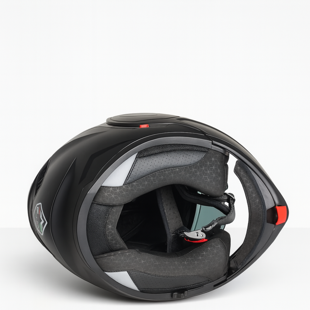 De Vito Reverse is een moderne systeemhelm in mat zwart met een comfortabele pasvorm en complete uitrusting. Dankzij de thermoplastische schaal, het gewicht van ca. 1780 gram en de uitneembare, uitwasbare binnenvoering is deze helm ideaal voor dagelijks scooter- en motorgebruik. Je krijgt er bovendien gratis een Pinlock-lens bij voor extra helder zicht.
